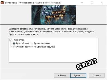 Добро пожаловать на QeWi.NET! На данной странице вы найдете актуальный и рабочий русификатор для игры Haunted Hotel Personal Nightmare. Здесь вы можете скачать русификатор для версии игры 1.0 и выше. Более подробная информация, а также ссылка на скачивание, ниже.