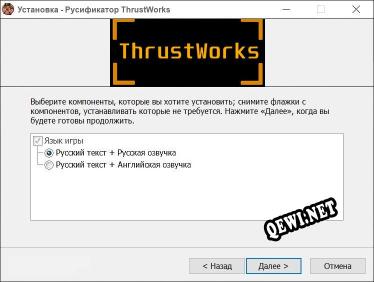 Добро пожаловать на QeWi.NET! Если вы зашли на эту страницу, вы скорее всего искали рабочий русификатор ThrustWorks. Здесь вы можете скачать русификатор для версии игры 1.0 и выше. Достуен русификатор от ORiGiN, в ближайшее время мы постараемся добавить больше файлов для этой игры!