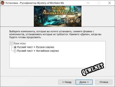 Добро пожаловать на QeWi.NET! Здесь вы найдете качественный русификатор для Mystery of Mortlake Mansion, который переведет игру на русский язык и поможет вам насладиться игрой на полную. Здесь вы можете скачать русификатор для версии игры 1.0 и выше. Доступен русификатор от Dr.XJ.