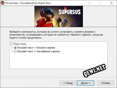 Добро пожаловать на наш сайт QeWi.NET! Мы загрузили этот протестированный русификатор для Super Sus. Русификатор позволит вам перевести игру. Достуен русификатор от LUCiD, в ближайшее время мы постараемся добавить больше файлов для этой игры!