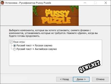 Добро пожаловать на QeWi.NET! На этой странице вы можете скачать русификатор для Pussy Puzzle. Используя русификатор к этой игре, вы сможете перевести игру на русский язык. Более подробная информация, а также ссылка на скачивание, ниже.