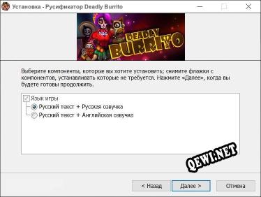 Добро пожаловать на QeWi.NET! Если вы зашли на эту страницу, вы наверняка искали русификатор для Deadly Burrito. Используя русификатор к этой игре, вы сможете перевести игру на русский язык. Этот русификатор от ZENiTH будет работать и на более поздних версиях.