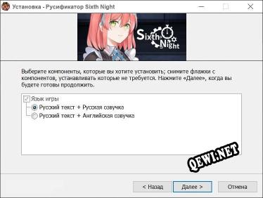 Представляем вашему вниманию русификатор текста для последней версии игры, который вы можете скачать с нашего сайта QeWi.NET совершенно бесплатно. Если вы зашли на эту страницу, вы наверняка искали русификатор для Sixth Night. Используя русификатор к этой игре, вы сможете перевести игру на русский язык. Более подробная информация, а также ссылка на скачивание, ниже.
