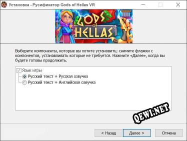 Приветсвуем на QeWi.NET! На этой странице вы можете скачать русификатор для Gods of Hellas VR. Используя русификатор к этой игре, вы сможете перевести игру на русский язык. Этот русификатор от iRRM будет работать и на более поздних версиях.