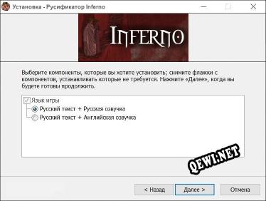 Представляем вашему вниманию русификатор текста для последней версии игры, который вы можете скачать с нашего сайта QeWi.NET совершенно бесплатно. Здесь вы найдете качественный русификатор для Inferno, который переведет игру на русский язык и поможет вам насладиться игрой на полную. Русификатор позволит вам перевести игру. На данный момент доступен русификатор от JUNLAJUBALAM.