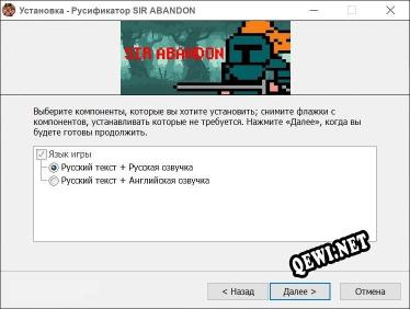 Добро пожаловать на наш сайт QeWi.NET! Если вы зашли на эту страницу, вы наверняка искали русификатор для SIR ABANDON. Русификатор позволит вам перевести игру. Доступен русификатор от Solitary.