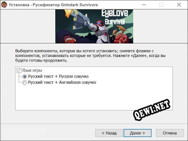 Добро пожаловать на QeWi.NET! Здесь ты можешь скачать русификатор для актуальной версии игры Grimdark Survivors. Используя русификатор к этой игре, вы сможете перевести игру на русский язык. Достуен русификатор от WDYL-WTN, в ближайшее время мы постараемся добавить больше файлов для этой игры!