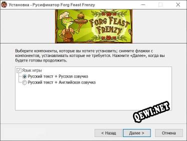 Приветствуем вас на страницах нашего сайта QeWi.NET, где вы найдете все необходимые русификаторы для своих любимых игр! Если вы зашли на эту страницу, вы наверняка искали русификатор для Forg Feast Frenzy. Используя русификатор к этой игре, вы сможете перевести игру на русский язык. Более подробная информация, а также ссылка на скачивание, ниже.