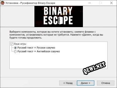 Приветсвуем на QeWi.NET! Мы загрузили этот протестированный русификатор для Binary Escape. Используя русификатор к этой игре, вы сможете перевести игру на русский язык. Более подробная информация, а также ссылка на скачивание, ниже.